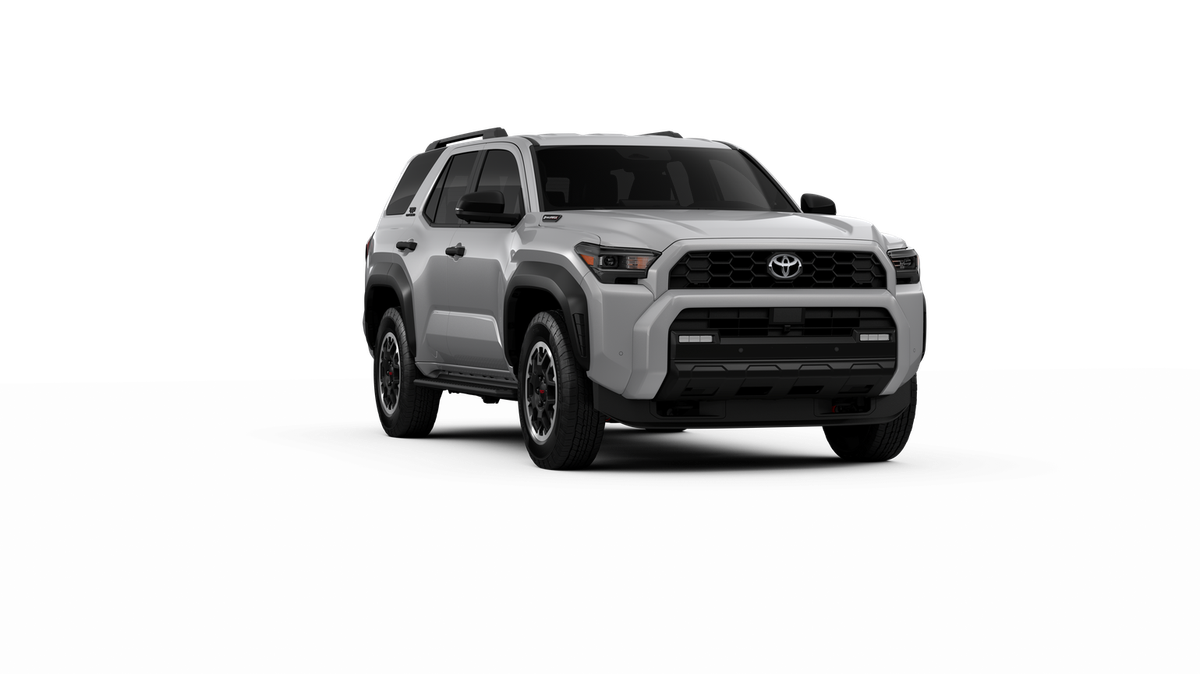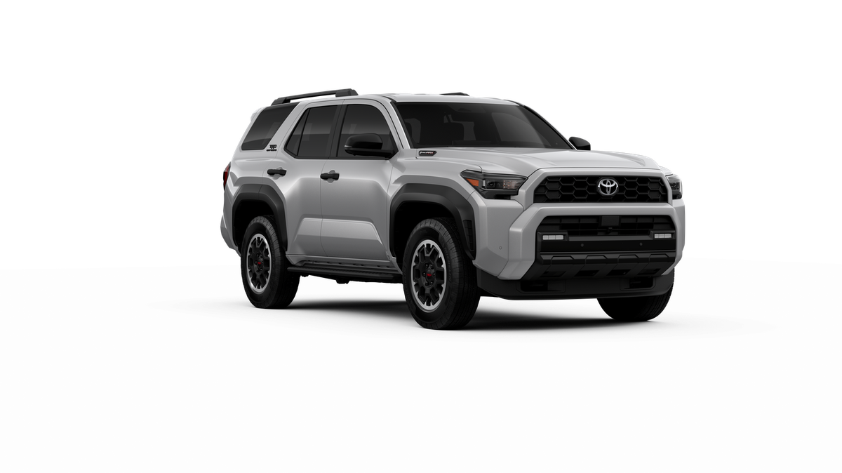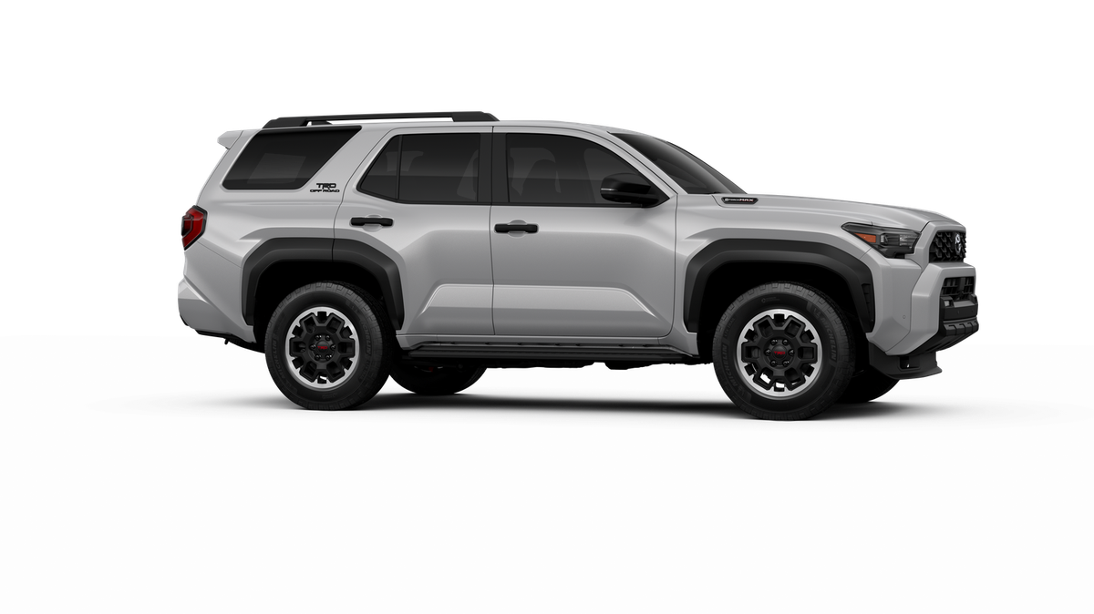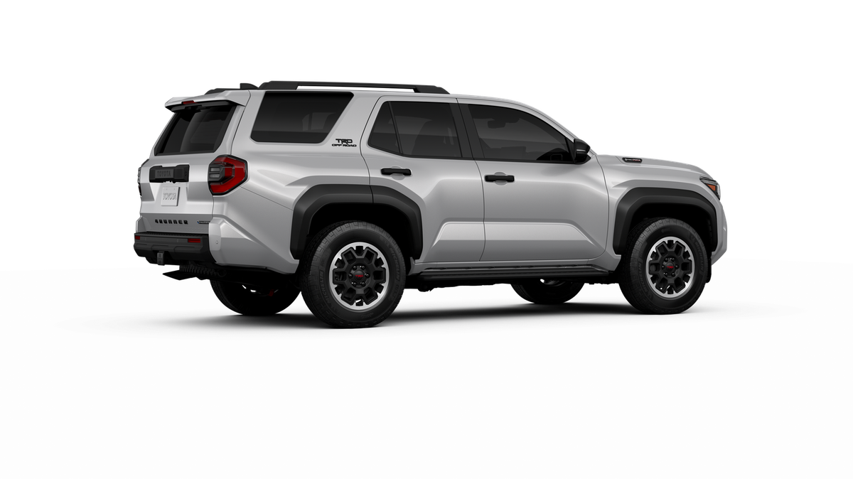 - Black honeycomb-style grille, mirror caps, door handles, and overfenders; color-keyed rear spoiler; black "TRD OFF ROAD" and "4RUNNER" badges