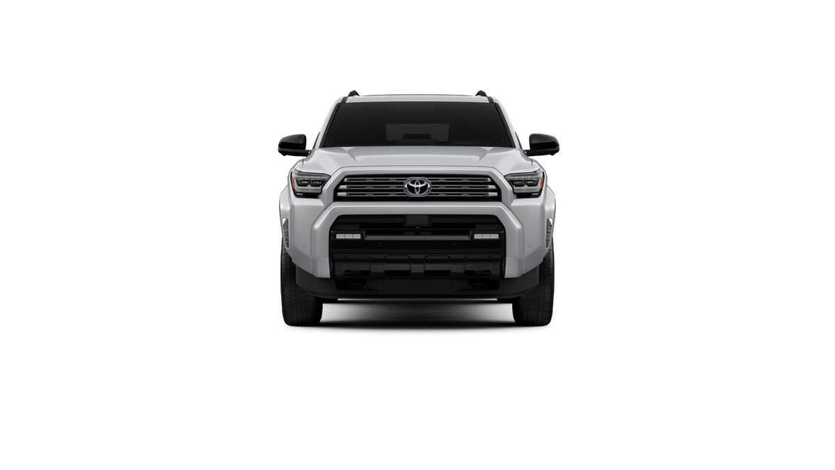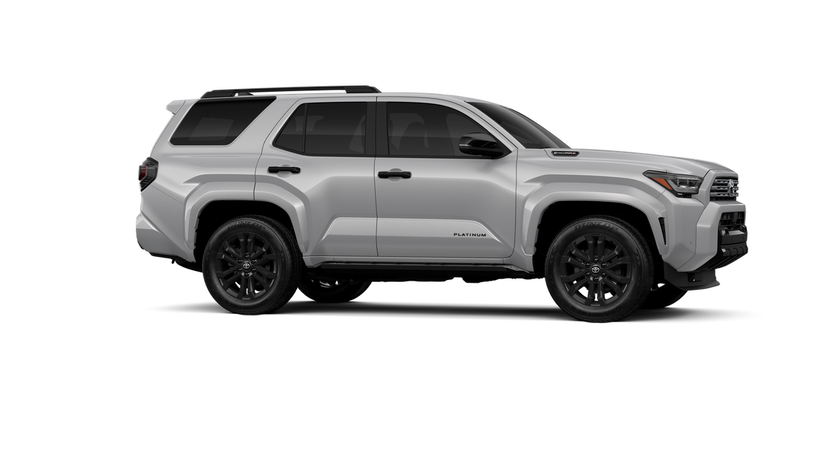 - Dark-chrome tri-bar grille; gloss-black mirror caps and door handles; color-keyed overfenders and rear spoiler; gloss-black "PLATINUM" and "4RUNNER" badges