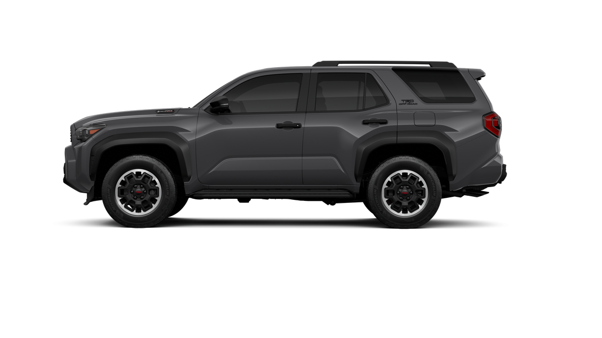 - Black honeycomb-style grille, mirror caps, door handles and overfenders; color-keyed rear spoiler; black "TRD OFF ROAD" and "4RUNNER" badges