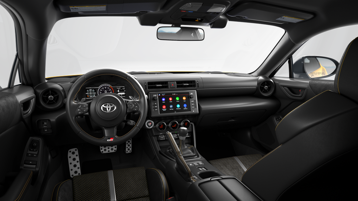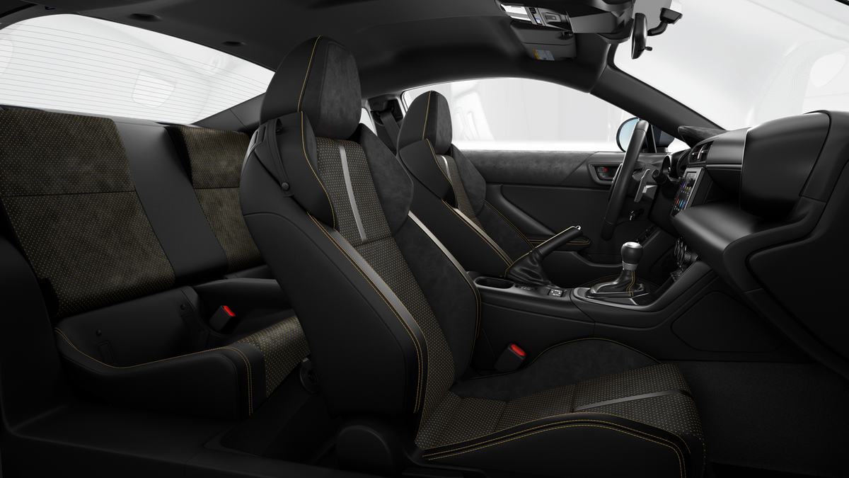 Interior Color Black Leather-Trimmed Bolsters, Ultrasuede®-Trimmed Inserts With Yellow Perforation And Yellow Contrast Stitching