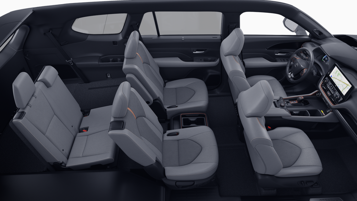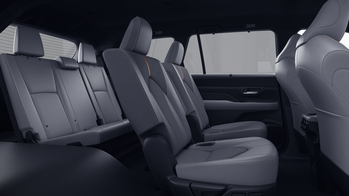 - 7-passenger seating with second-row fold-down captain's chairs and fold-down inboard armrests, adjustable headrests and two cup holders mounted on the floor; and 60/40 split, fold-down third-row seats with sliding headrests and recline function