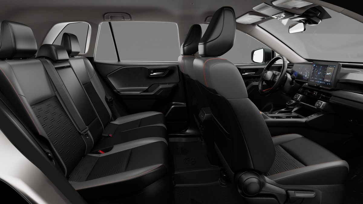- Uniquely patterned perforated soft-touch door and dash panels with interior red orange accents