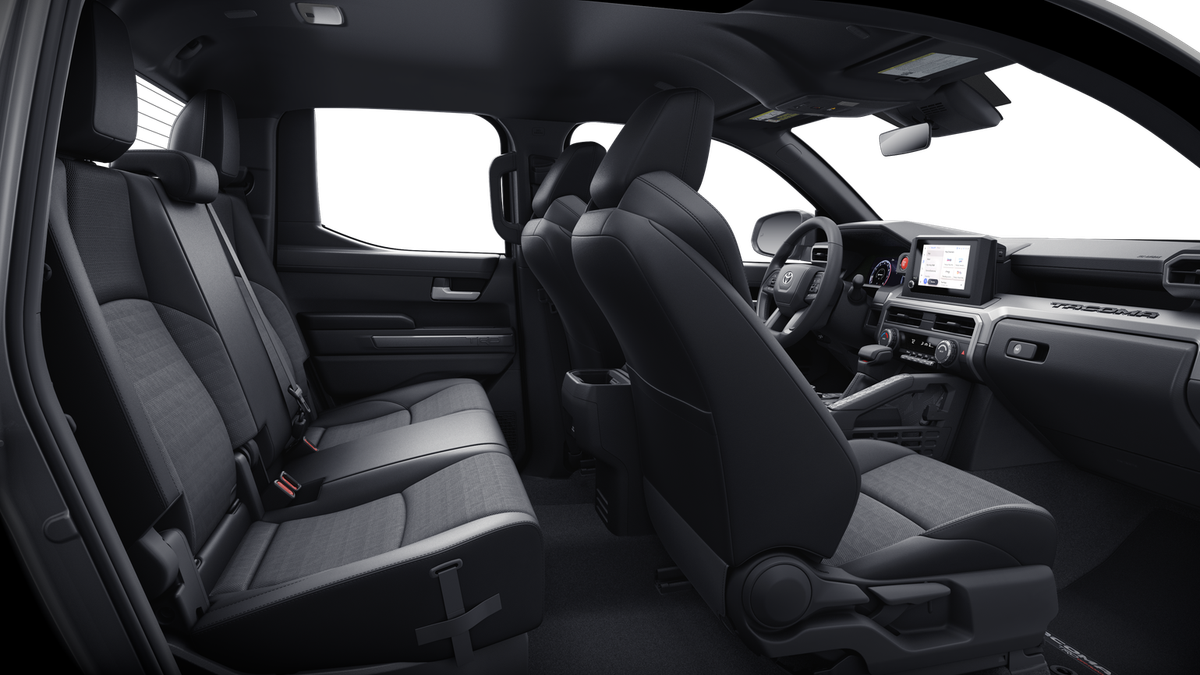 TRD Off-Road Premium Package (A/T) — includes 18-in. TRD alloy wheels, SofTex®-trimmed seats with heated and ventilated 8-way power-adjustable front seats, leather-trimmed heated steering wheel, 14-in. Toyota Audio Multimedia display, Multi-Terrain Monitor (MTM), JBL® Premium Audio with JBL® FLEX portable speaker, moonroof, Qi-compatible wireless charging, dual zone automatic climate control, Front and Rear Parking Assist with Automatic Braking (PA w/AB) and Pedestrian Detection, prewired auxiliary switches, digital rearview mirror, Integrated Trailer Brake Controller (ITBC), power open/close tailgate, Digital Key capability, 400W/120V AC power inverter, and power horizontal rear window
