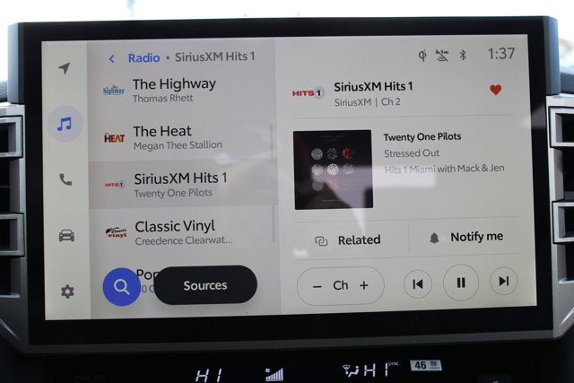 - Gray-painted horizontal-bar grille with satin chrome surround