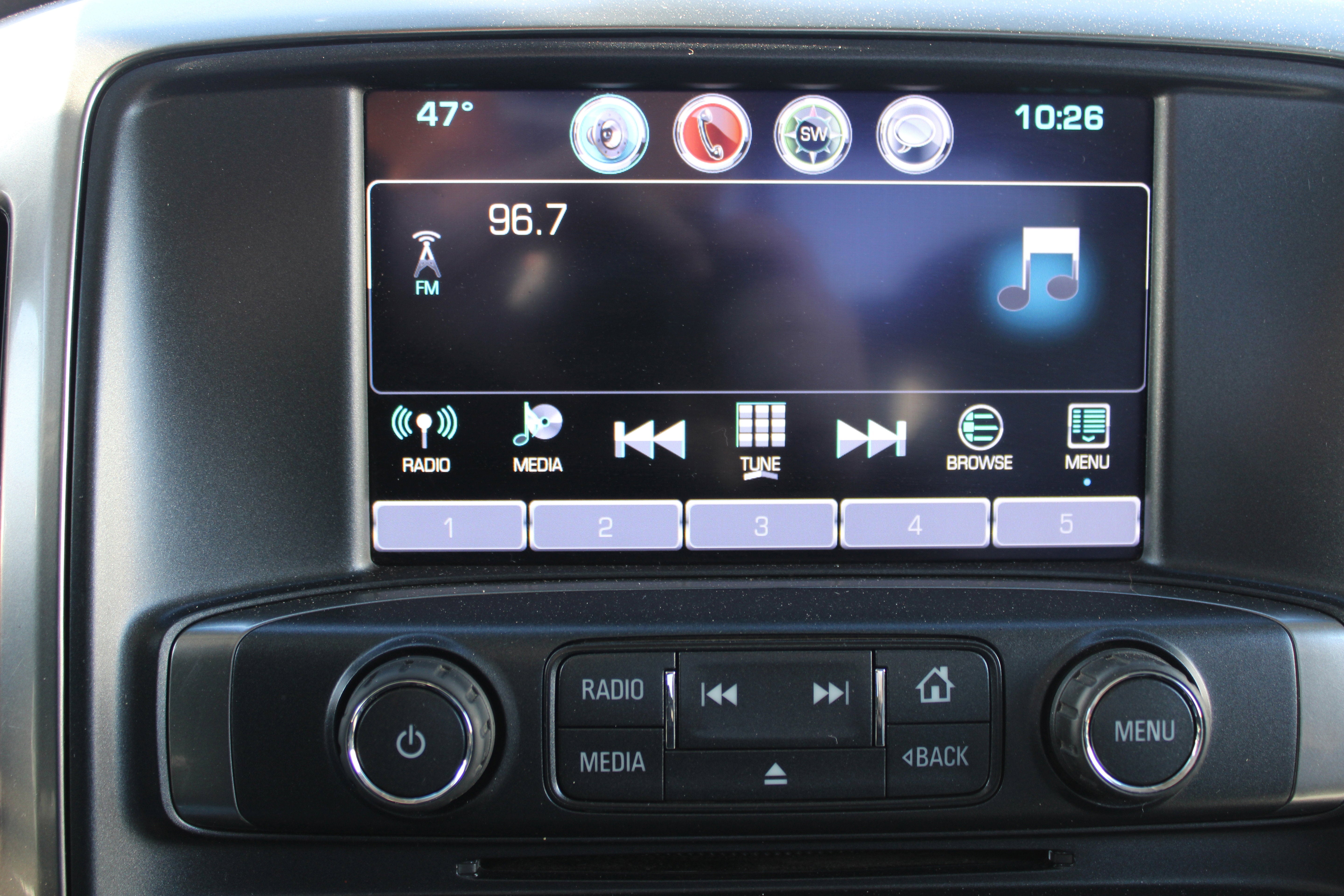 - Audio system, Chevrolet MyLink Radio with 8" diagonal color touch-screen, AM/FM stereo with seek-and-scan and digital clock, includes Bluetooth® streaming audio for music and select phones; USB ports; auxiliary jack; voice-activated technology for radio and phone; and Shop with the ability to browse, select and install apps to your vehicle. Apps include Pandora, iHeartRadio, The Weather Channel and more.