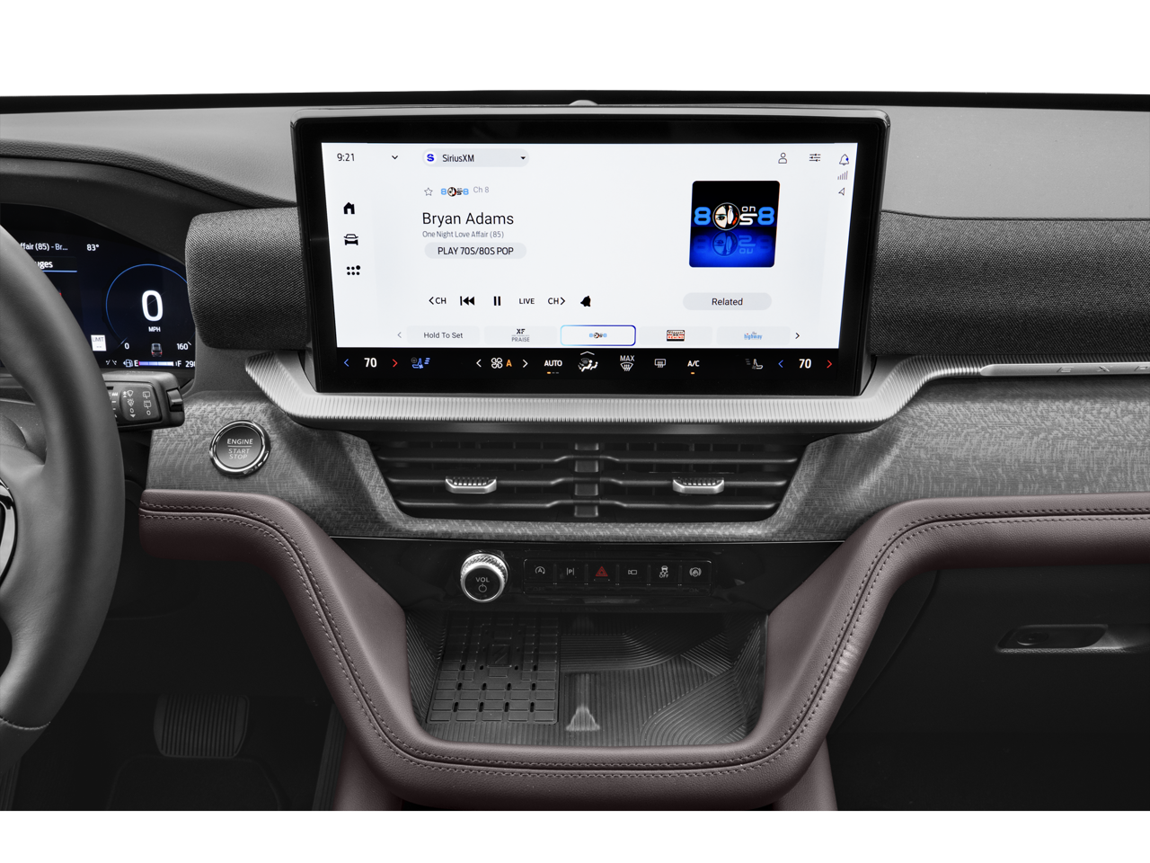 - Radio: B&O Sound System by Bang & Olufsen w/HD -inc: MP3 capability, 980 watt, 14 speakers, subwoofer, speed-compensated volume, SiriusXM w/360L and 3-month prepaid subscription (service is not available in Alaska and Hawaii), Ford digital experience w/13.2" color LCD touchscreen in IP center-stack, Alexa built-in, Google Assistant, Google Maps and Google Play, pinch-to-zoom capability, 911 Assist, Apple CarPlay and Android Auto wireless compatibility, Note: SiriusXM services require a subscription, sold separately by SiriusXM after the trial period, Your SiriusXM service will automatically stop at the end of your trial unless you decide to subscribe, If you decide to continue service, the subscription plan chosen will automatically renew and be charged according to your chosen payment method at the then-current rates, Fees and taxes apply, See the SiriusXM customer agreement and privacy policy at http://www.siriusxm.com/ www.siriusxm.com for full terms and how to cancel, which includes online methods or calling 1-866-635-2349, Available in the 48 contiguous United States, D.C, and Puerto Rico (w/coverage limits and capable receiver), Visit http://www.siriusxm.com/FAQS for most current service area information, Availability of some services and features is subject to device capabilities and location restrictions, All fees, content and features are subject to change, SiriusXM, Pandora and all related logos are trademarks of Sirius XM Radio Inc, and its respective subsidiaries Eligible 2025 model-year vehicle receive complimentary access to 3-years of Alexa built-in and 1-year of Ford premium connectivity connected service plan enabling Google Assistant, Google Maps and Google Play which begins on the new warranty start date. Evolving technology/cellular networks/vehicle capability may limit functionality and prevent operation of connected features.